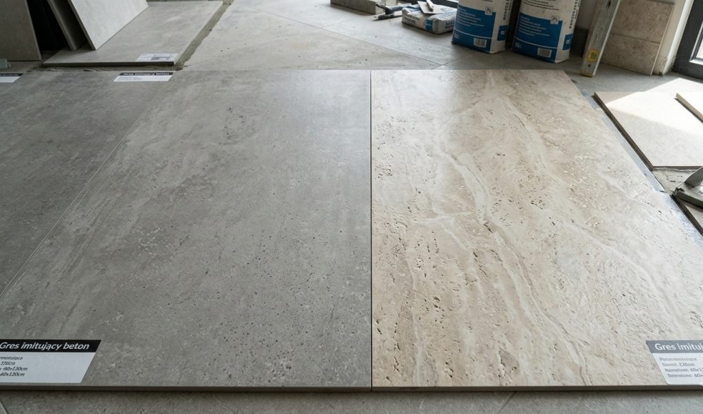 Co je łączy, a co różni? Oba rodzaje gresu są ekstremalnie trwałe, odporne na chemię i zarysowania. Ich główną różnicą jest charakter wnętrza – beton uspokaja, kamień dodaje blasku. Ważne: Bez ogrzewania podłogowego materiał jest zimny w dotyku.